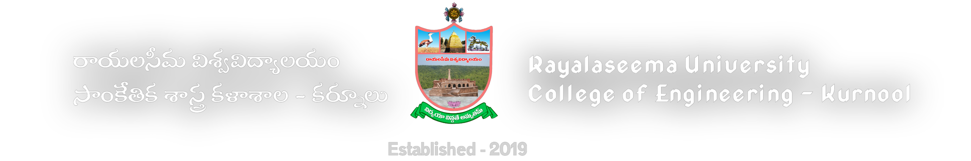 Rayalaseema University College of Engineering(RUCE) was established in the year 2019 and it is an emerging center for excellence in Engineering education, boast of energetic & experienced faculty, successful students, great infrastructure. The management encourages the students and the faculty to “Dare to Dream and Strive to Achieve”. The institutes are indeed “dream come true” for many aspiring youngsters from rural areas & urban areas in Andhra Pradesh.